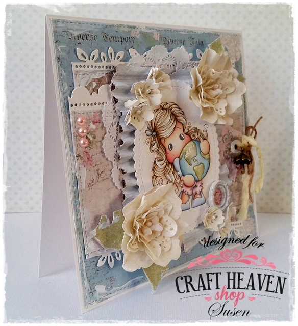 Everything is finished off with a slight touch of Gesso to give the card that wonderful shabby feel..