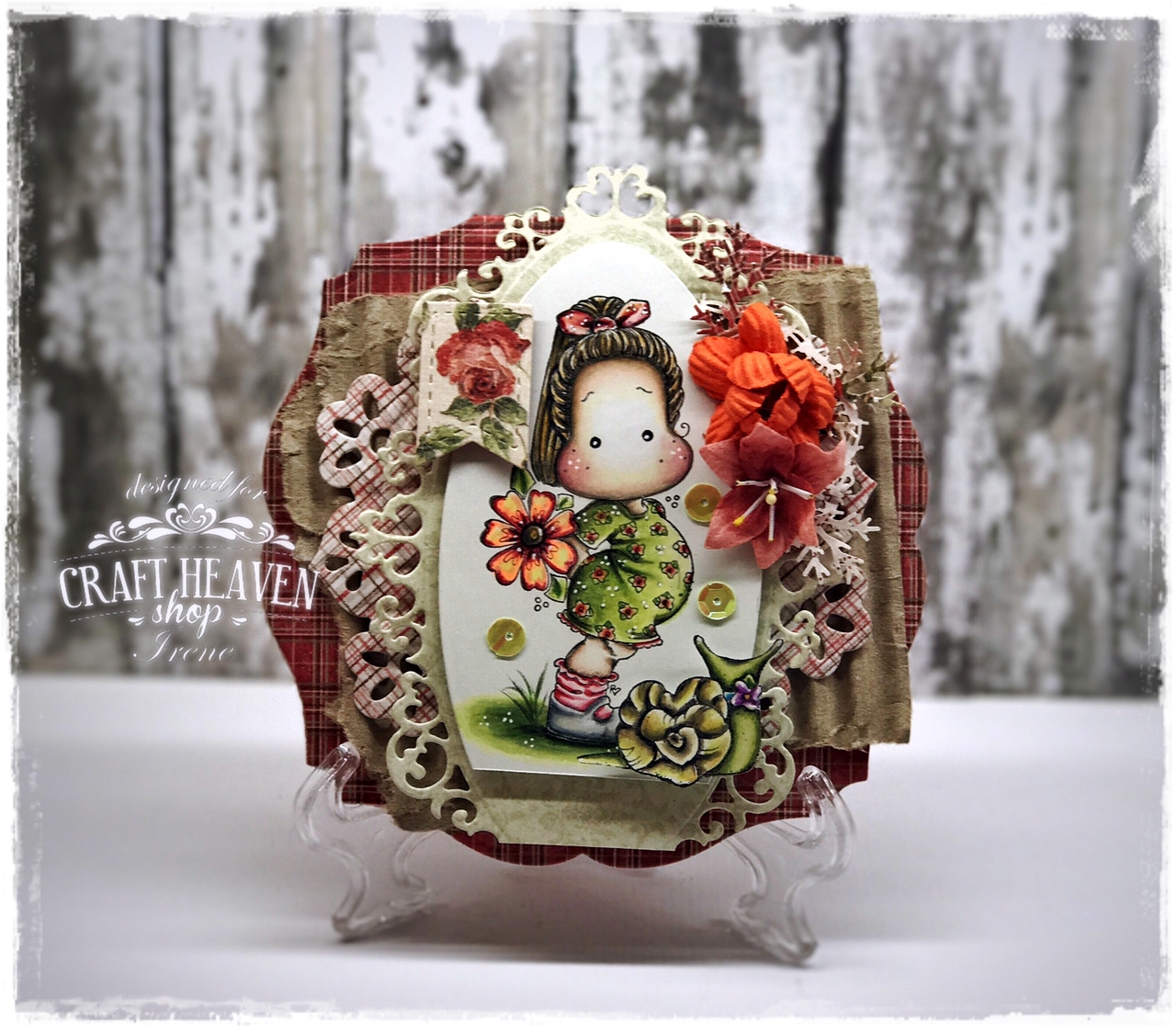 Irene stamped Tilda and that cute little Snail with Jet Black Archival Ink, used her Prismacolor pencils to colour them up and then made the white dotted highlights with a Ranger White Opaque Pen..