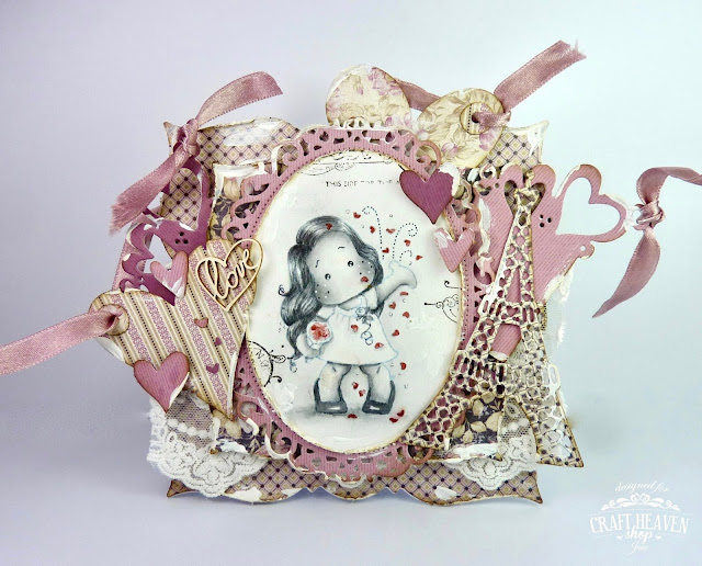 I choose Tilda with Bunny Slippers for this card. She is so cute. I coloured her with my Distress refills.