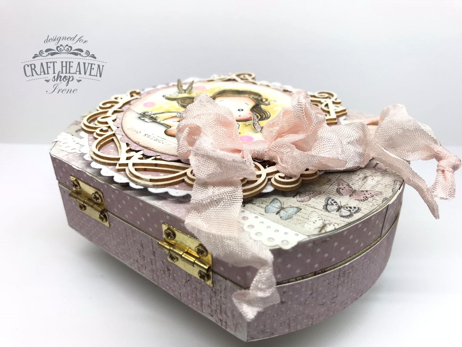 Today I choose the Scrap Decor Technique. I bought a wooden box in the shape of a wallet and decorated with my favorite papers from Maja. This is the beautiful "Vintage Spring Basics-Collection", and just love this papers. The colors are so soft and you can do anything...
