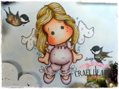 You can see a doily under the image that was coloured with Distress Inks and markers..
