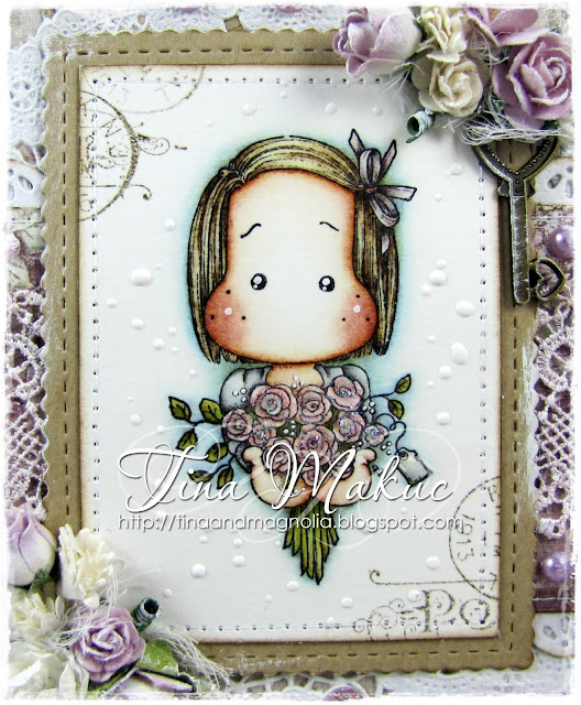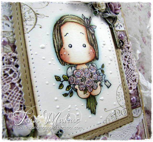 After I was done with all the colouring, I used some Frantage around her and some Stardust Stickles on the bouquet..