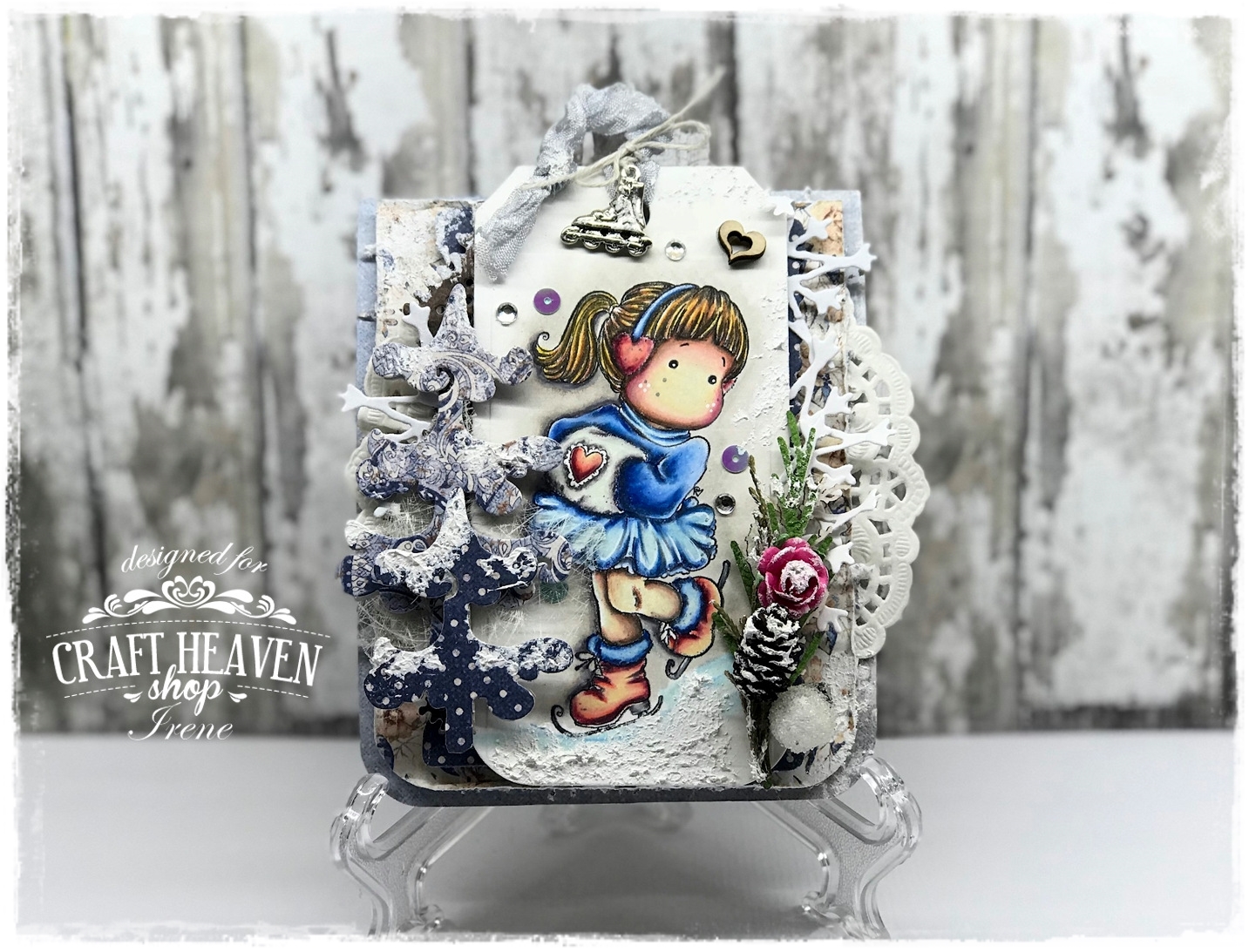 I kept the center of the card pretty simple, only adding some Gesso and sparkle to it for that frosty look. And a cute little resin frame.