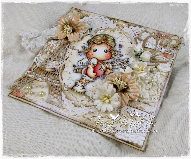 Dodala sem čipko Fleur, za tisti pravi ljubezenski feeling pa še Vintage trak - Srca..